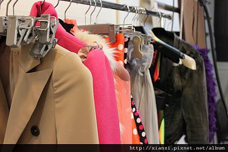 哇~衣架上掛著滿滿的衣服,都是這次造型師為弦子量身打造的唷!
